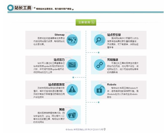 站長可以通過工具區(qū)提供的死鏈推送、站點索引量查詢、站點抓取報錯查詢、robots工具、站點壓力反饋和網(wǎng)站安全監(jiān)測等功能,減輕網(wǎng)站服務(wù)器壓力,提升網(wǎng)頁抓取效率和質(zhì)量,減少網(wǎng)站安全隱患,從而實現(xiàn)網(wǎng)站的精細(xì)化運營。資料區(qū)提供了搜索優(yōu)化案例、工具使用說明、網(wǎng)站運營經(jīng)驗文檔,幫助站長汲取網(wǎng)站運營經(jīng)驗、夯實理論基礎(chǔ);站長社區(qū)的則是站長間溝通和分享的平臺,既會定期組織交流活動和分享討論,,有利于站長們?nèi)¢L補短提升網(wǎng)站運作技巧,解決站長面臨的典型問題。